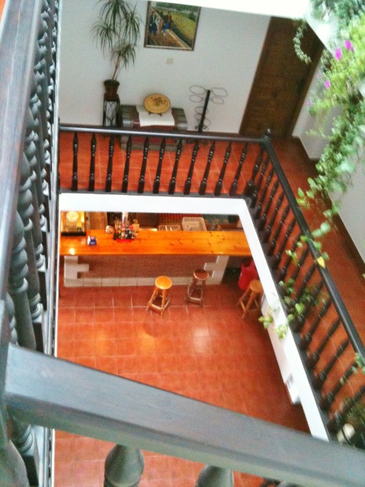 The hostal is set up like some of the bars in old Western movies where the bar and hotel desk are in the opposite ends of the main room and the stair case goes up and winds around where the room doors face over the bar and stuff. It meant it was a little noisy from people down in the bar in the evening, but his earplugs worked pretty well and it got real quiet after about 11 when apparently everybody got kicked out. Earlier in the evening an Irish guy bought Keith a beer. He was some type of statistician and he said that he was going to write an alternate guide to the Camino called, “My feckin’ Camino!” There was also an older Canadian couple that were biking the Camino. One of their bikes had a flat and another Irish guy was trying to help fix it. He was a funny, classic Irishman comic character—and while he was working on it he prayed out loud invoking, “Jesus Christ and all the flippin’ saints!” Sadly this didn’t get the tire fixed. Later he had dinner with the Canadian couple and they said they planned to get a ride into the next city to see if they can get it fixed or replaced since it’s a rental.