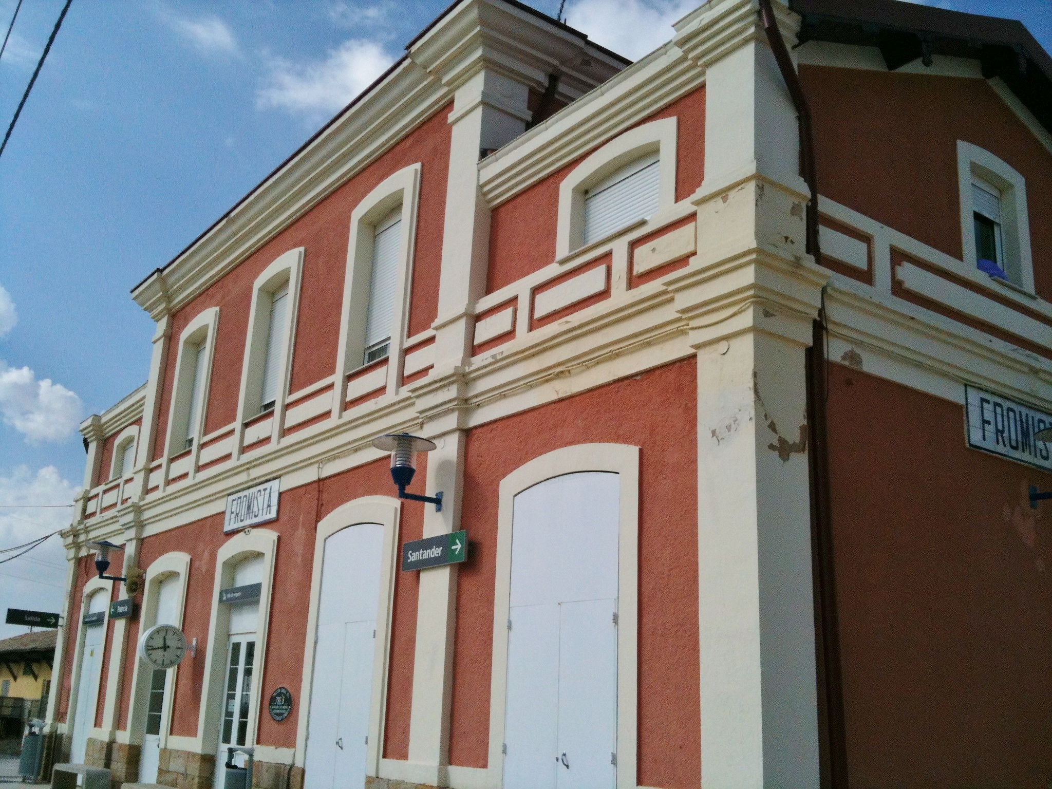 We are happy to report that Keith’s trip to Palencia went pretty smoothly with exception of the fact that the 11 AM train never came to fruition and instead he got to hang out at the Frómista train station for six hours waiting for the next one! When he first got up that morning he seriously considered just staying where he was because he was still blechedich. But he gathered his strength (and his backpack) and got down to the station well before the supposed 11 o’clock train. And well well before the 5 o’clock train that he actually ended up on!! While waiting he visited with a Dutch couple off and on, did a little Sudoku, and just held on until the train cometh.