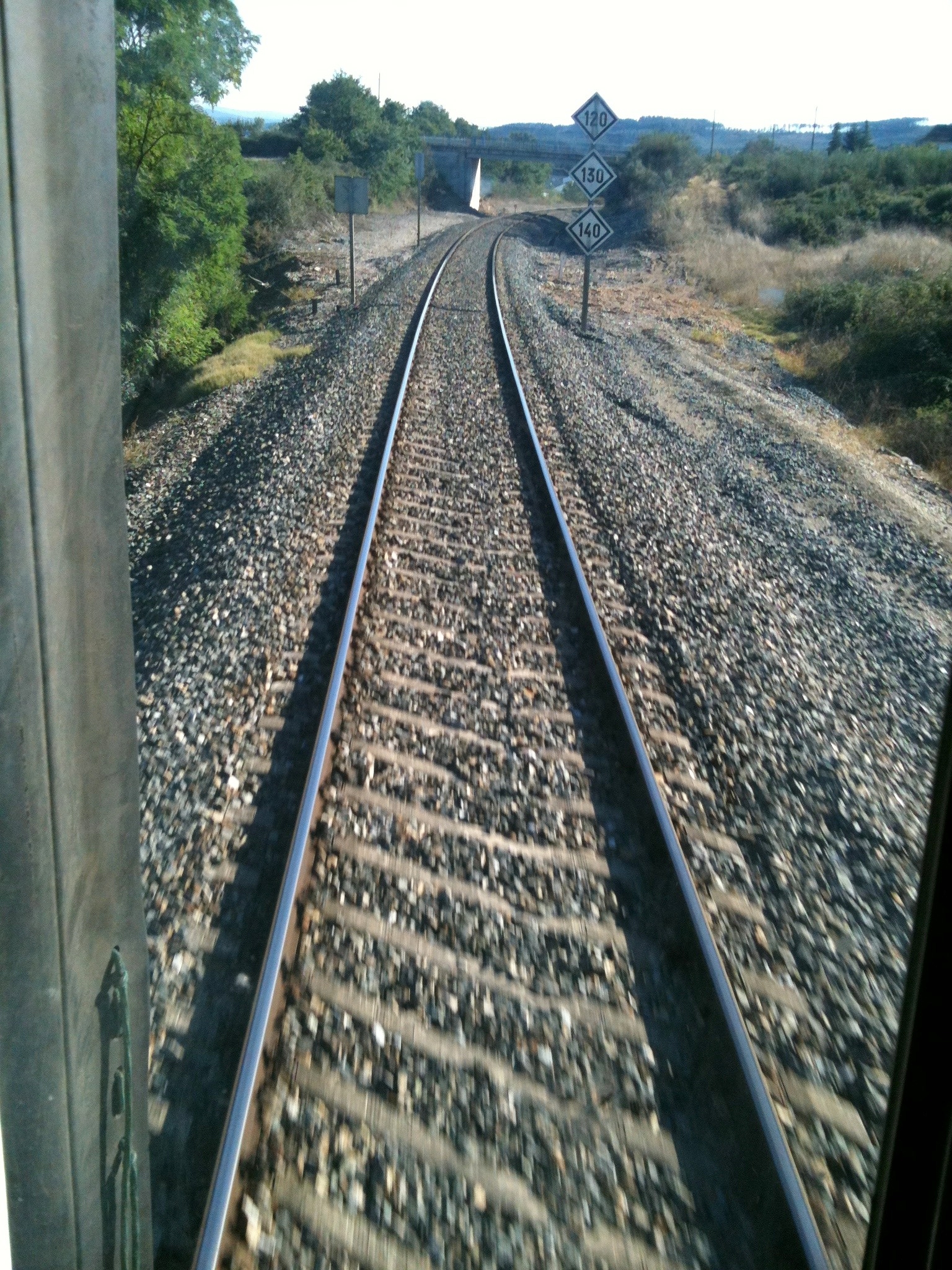 The train ride was so long that once they got to a certain point about an hour away from Sarria they rechecked tickets and directed everyone to specific cars based on their destination. In the cars all of the seats in the front part faced backwards and all the seats in back faced forward. After the adjustments to destination cars he was facing forward, but when he looked back he found that there were no longer any cars behind them. They had just dropped off the whole back of the train.