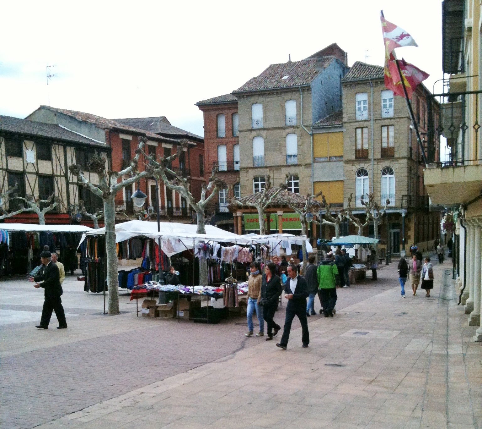 Keith’s trek today led him to the “municipality” of Carrión de los Condes. I’m sure there’s some sort of official definition that helps them decide whether it’s a village, a town, a city, or a municipality, but I have yet to figure out the system so far. The place he’s staying at reminds him of “staying at somebody’s grandparent’s house,” but he said that he couldn’t ask for a better view. He’s on the 2nd floor and his room has a balcony that looks straight over into the Church of Santa María de las Victorias. Also, in his room is a unique shower with a triple panel door and he reports that the brand name is “Original DuschoLux.”