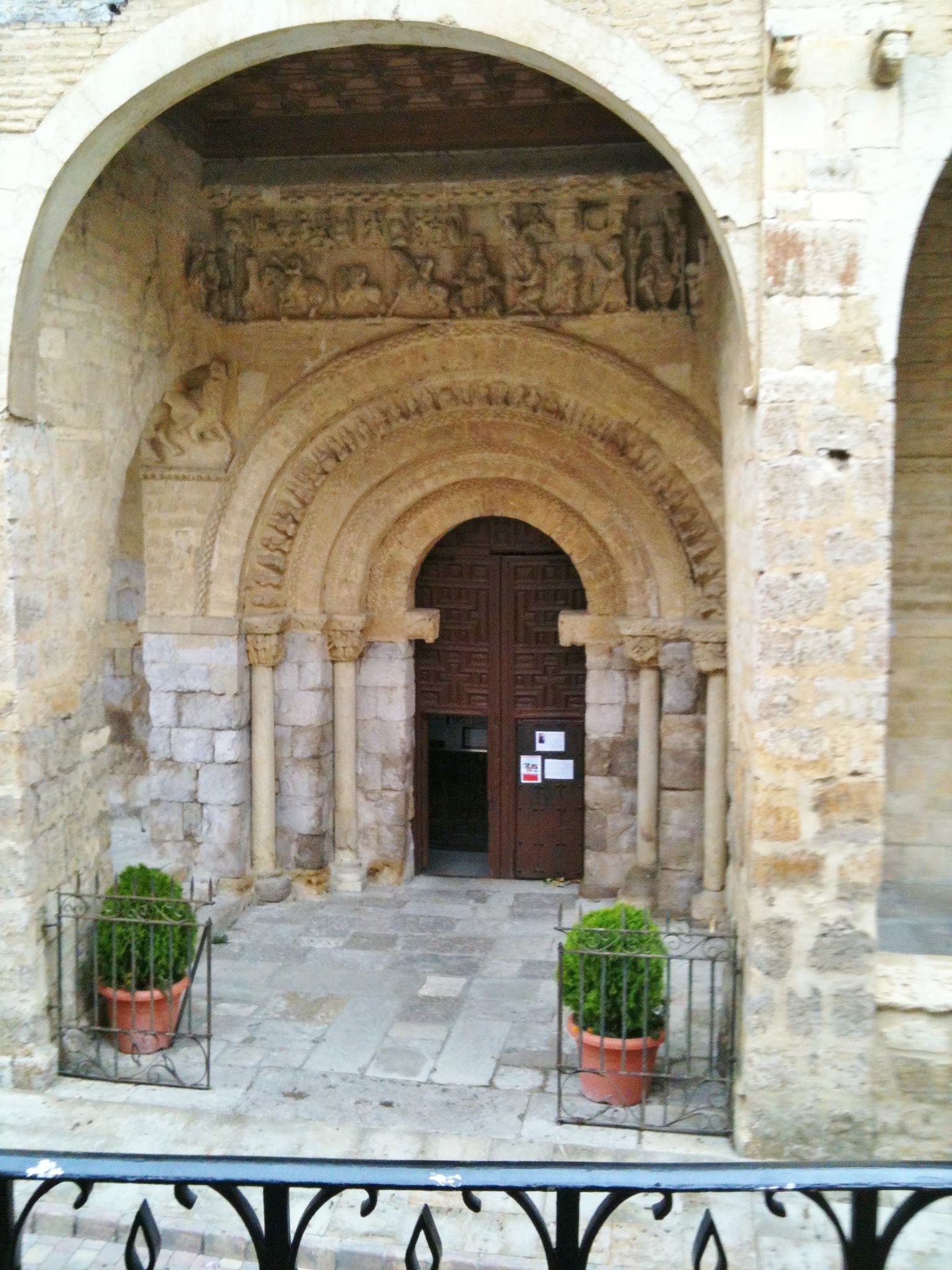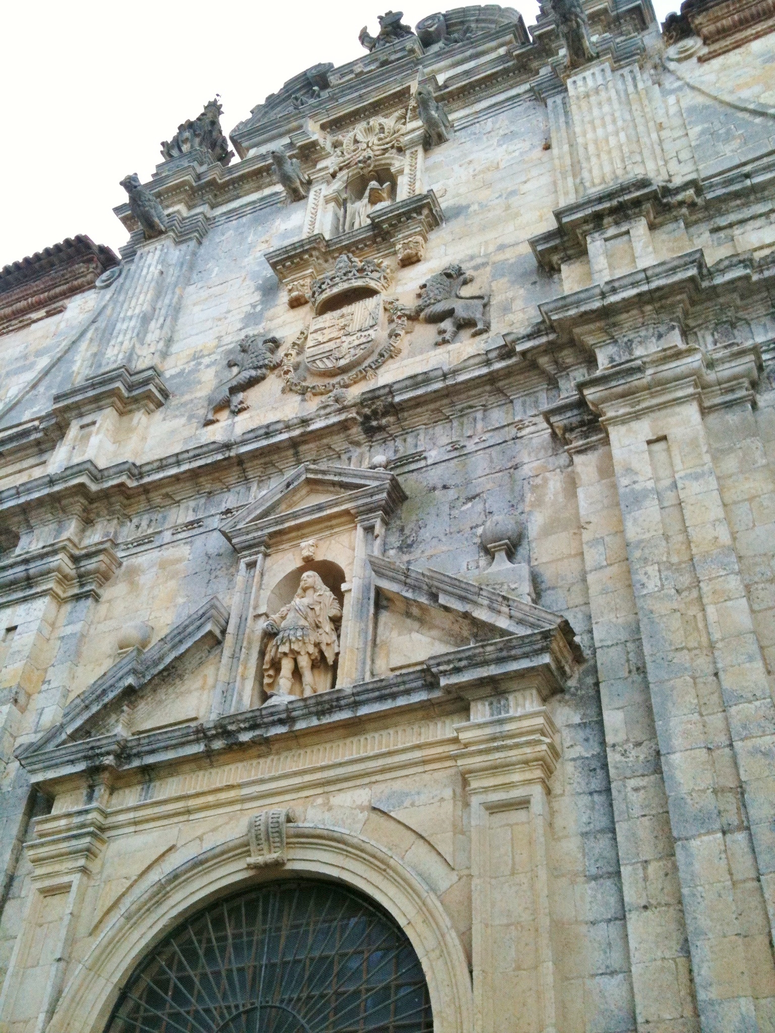 The Palencia Cathedral had its own museum that had 16th century tapestries that looked really fresh–the colors were really bright on them; an El Greco; and a favorite for him (because “it was odd and my mind holds little things in it better”) was a painting that when you look at it straight-on it looks like a smear–not like anything–but in a box at the side there is an eyehole and when looking through it from the edge on there is a portrait of King Carlos. The cathedral itself had excellent architecture that he said he thought I’d really like. (No doubt :) )