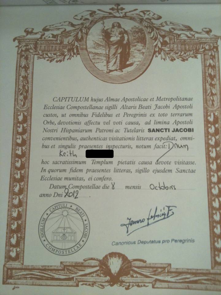 When he went to the Pilgrim’s office to get his compostela they stamped his credencial with the Cathedral’s official stamp. He was disappointed that they couldn’t “Latinize” his name because it’s just not Latin friendly. I told him they should’ve gone with Keithus. Et tu Keithus? You, too, have earned your compostela??