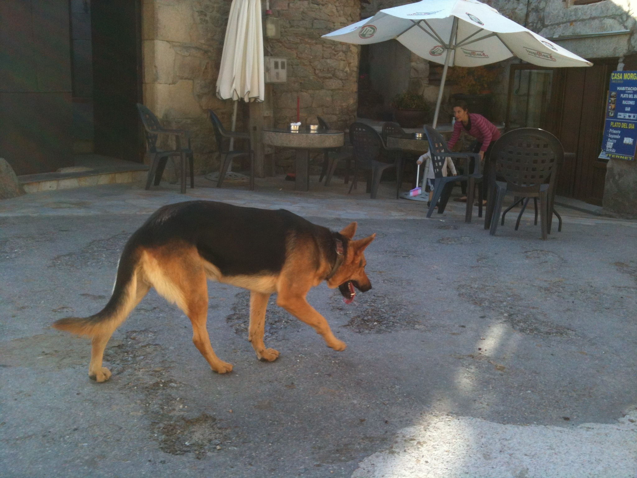 He took a picture of a couple cats on the way out of town this morning in a store window. And saw a bunch of dogs throughout the day. The Camino goes through some people’s barn yards and fields and increases the odds of bumping into people’s pets and livestock. There was one guy that had a little motorcycle and was accompanied by a huge German Shepard (with a head twice the size as the ones here at home) and the dog loved the motorcycle and kept running ahead of it and “enjoying the hell out of it.” Another guy must’ve been on the Camino, but was also traveling with a dog. Another traveller he saw was a woman pulling a little homemade wagon with all her stuff in it. (Reminds me of Jim’s skateboard suggestion)