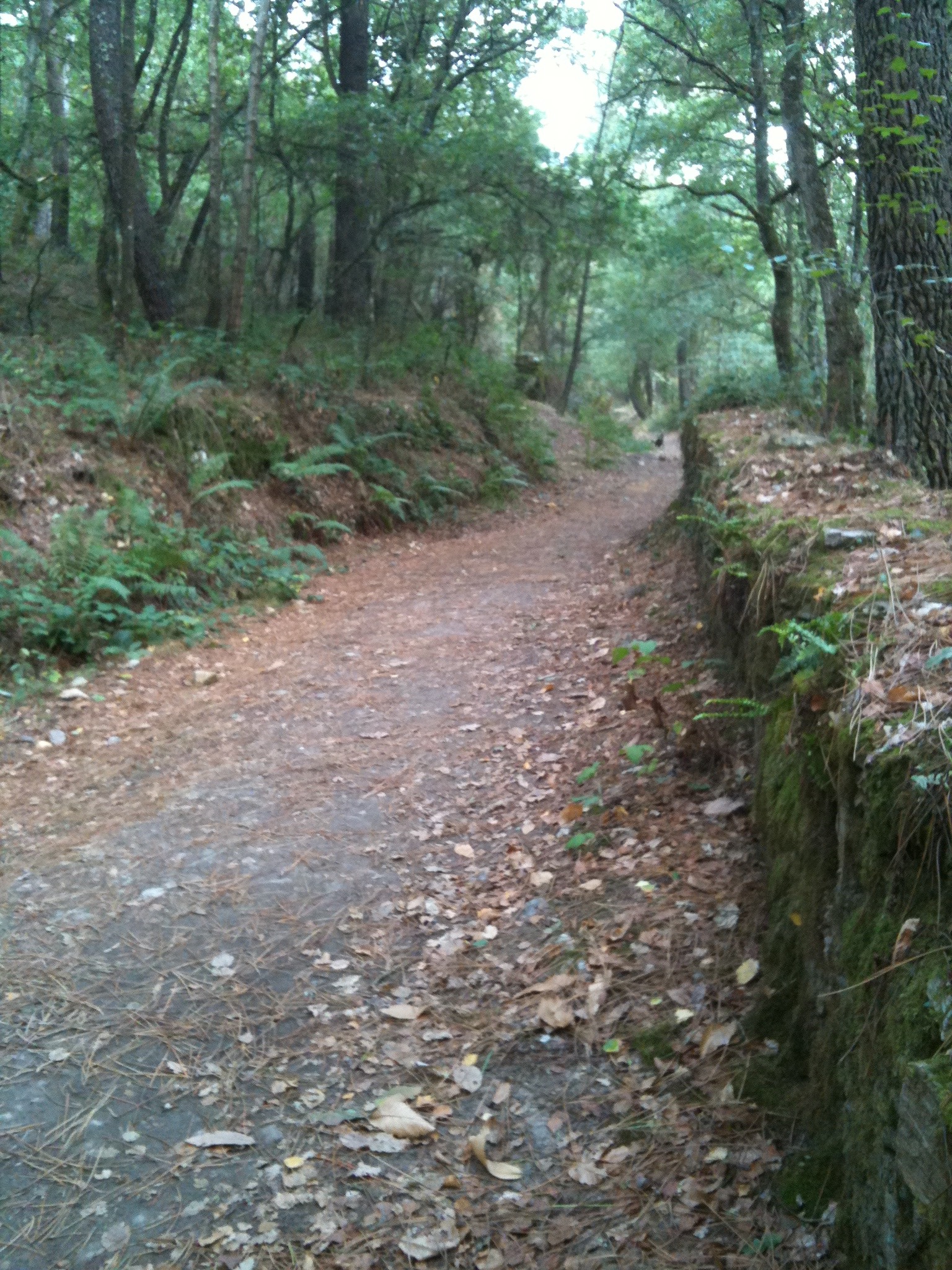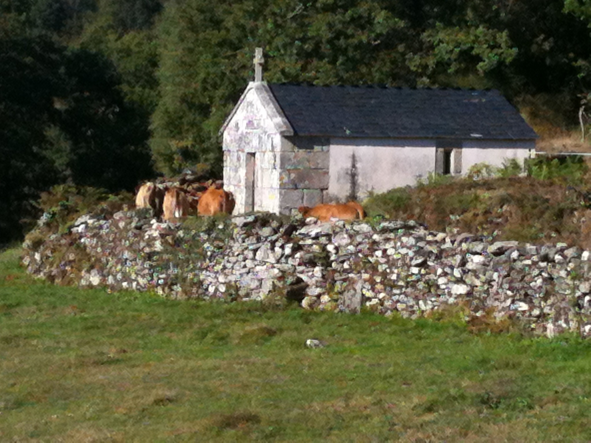 He likes the area he’s in now more for walking and it reminds him in some ways of the Northwest with hills and trees for shade. He says that it’s been a nice change from the other stretch of the Camino which was flat. A way that it’s unlike home is the New Englandy/Irishy kind of rock walls. Also, instead of crumbling adobe and red tile roofs like the first region of the walk–he’s now seeing granite blocks and black slate roofs. This area was settled by Celts (explaining the rock walls) and at one point on the trail he even heard someone playing bagpipes.