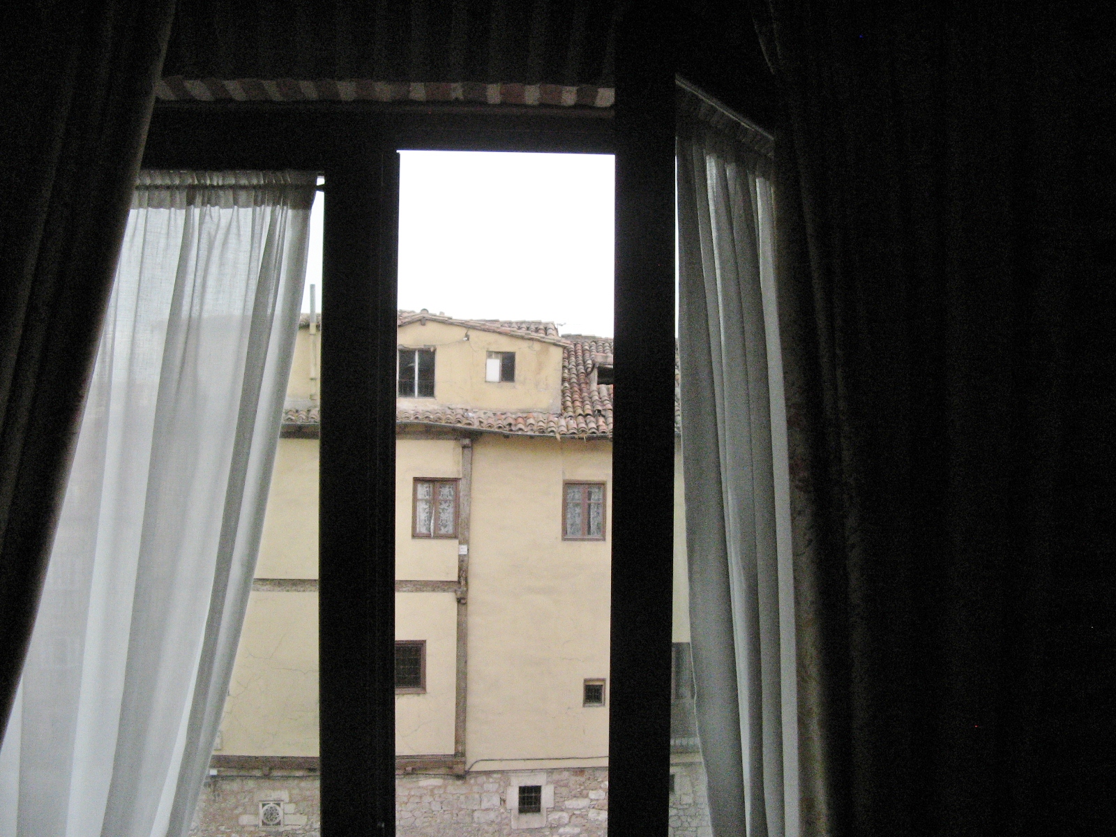 The hostal is set up like some of the bars in old Western movies where the bar and hotel desk are in the opposite ends of the main room and the stair case goes up and winds around where the room doors face over the bar and stuff. It meant it was a little noisy from people down in the bar in the evening, but his earplugs worked pretty well and it got real quiet after about 11 when apparently everybody got kicked out. Earlier in the evening an Irish guy bought Keith a beer. He was some type of statistician and he said that he was going to write an alternate guide to the Camino called, “My feckin’ Camino!” There was also an older Canadian couple that were biking the Camino. One of their bikes had a flat and another Irish guy was trying to help fix it. He was a funny, classic Irishman comic character—and while he was working on it he prayed out loud invoking, “Jesus Christ and all the flippin’ saints!” Sadly this didn’t get the tire fixed. Later he had dinner with the Canadian couple and they said they planned to get a ride into the next city to see if they can get it fixed or replaced since it’s a rental.