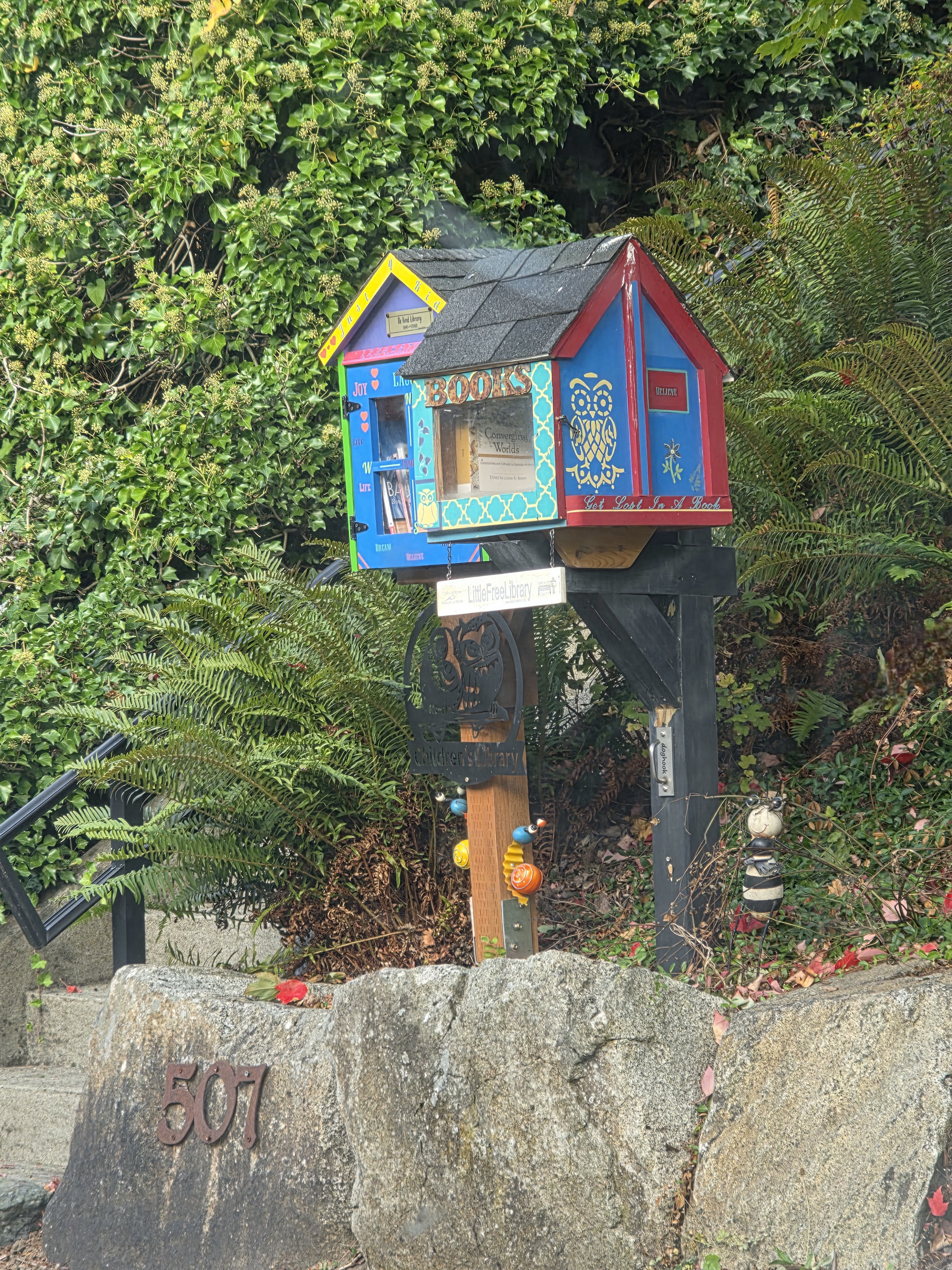 This was the 3rd library I visited in Bellingham on Oct. 8th, 2025. I do not see it listed on the Little Free Libraries online map, but it’s on the northeast corner of 21st and Harris.