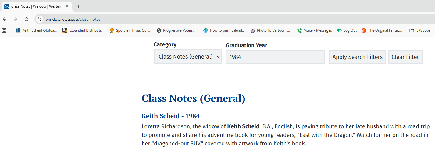 The Western Washington University Window Winter Magazine included a note in the “Class Notes” section of this quarter’s magazine about the dragoned-out 🐲 SUV and its maiden voyage.